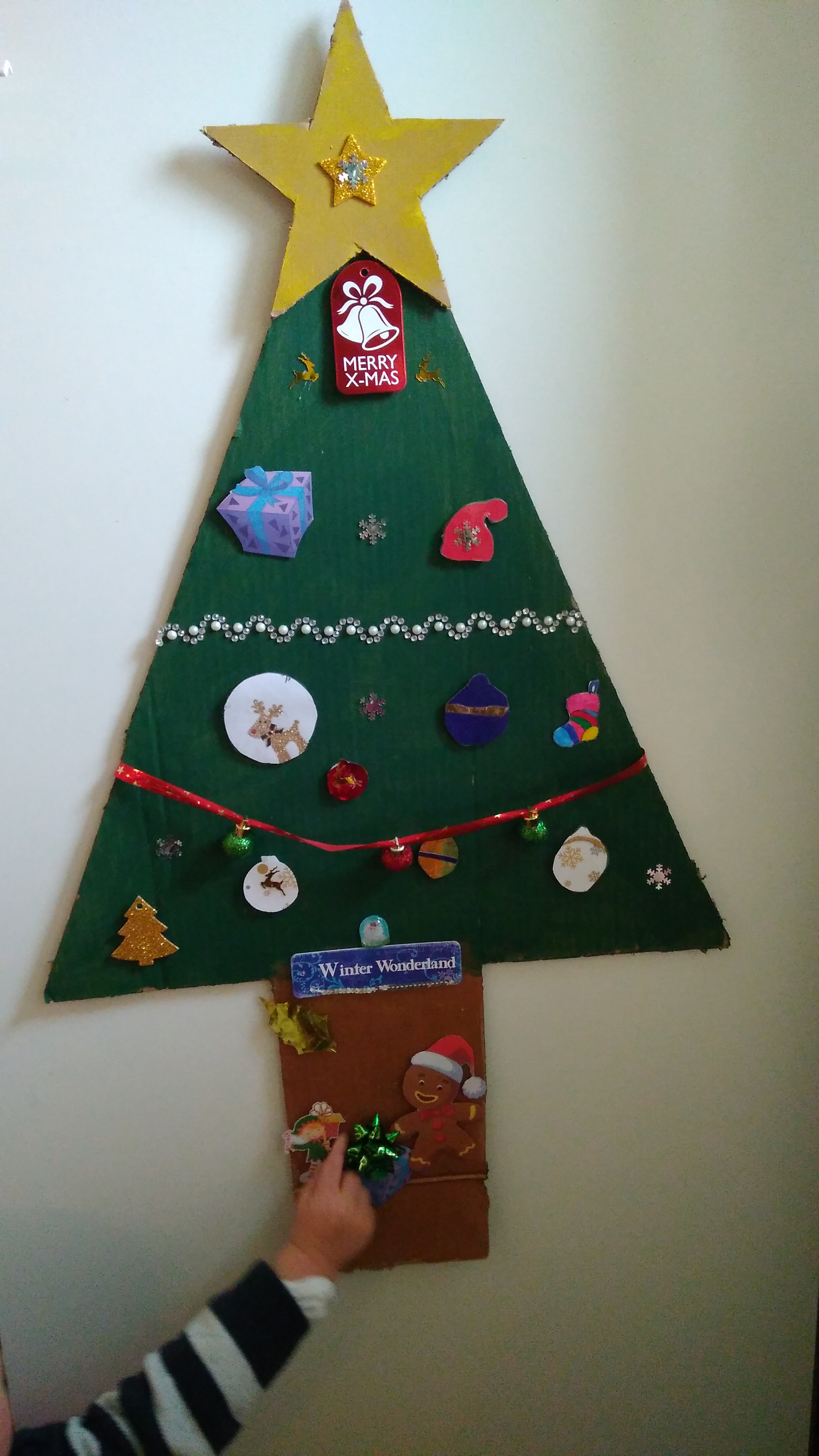 I have told to the kids that we will do an activity about Christmas. We will use a cardboard to make a christmas tree and decorate it with papers. Nolan went to see me and asked a lot of questions about my previous job. Then he asked what was bothering him : “Is it because we don’t have enough money that we can’t have a normaal christmas tree ?”