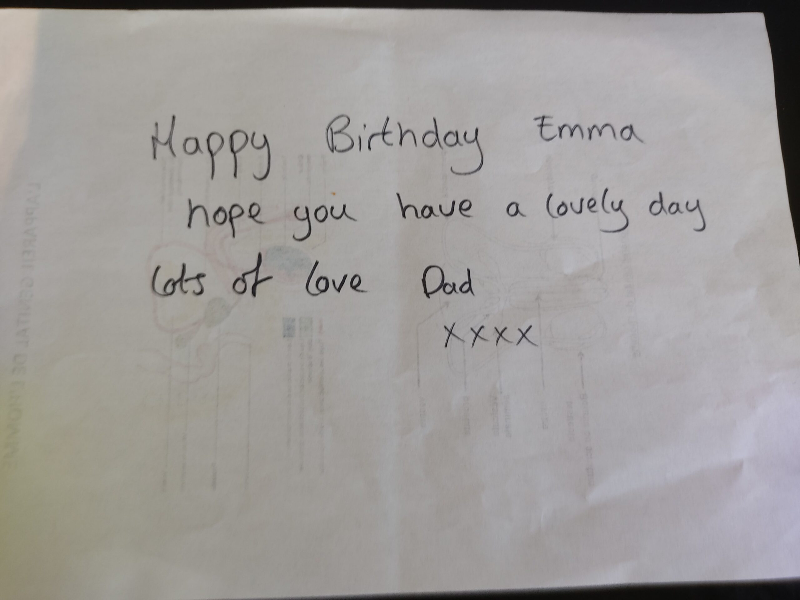 Daddy took a random scrap paper to write a little note for Emma. She thought that he would have drawn a picture for her so she looked on the other side
